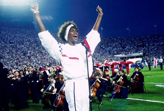 Brandy gave a salute to her late idol, Whitney Houston, while performing the national anthem at Sunday’s NFC championship game between the Los Angeles Rams and the San Francisco 49ers.